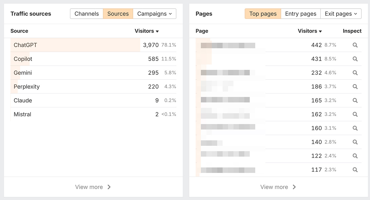 For one of the sites I’m tracking with Ahrefs Web Analytics, we can see that almost all of the AI search traffic it’s getting is from ChatGPT: