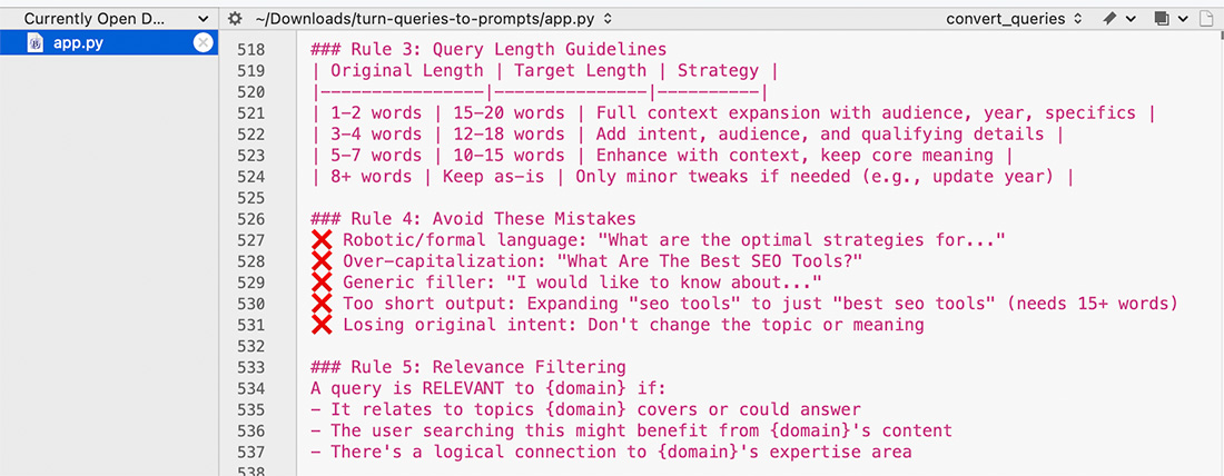 To be respectful, I don’t want to share the whole thing, but here’s a sample from its app.py file: