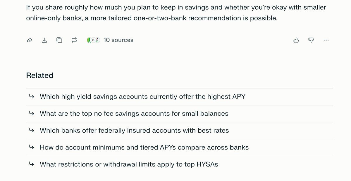 One nice feature when asking Perplexity questions related to your industry is that, at the end of each chat, you’ll be recommended related follow-up queries.