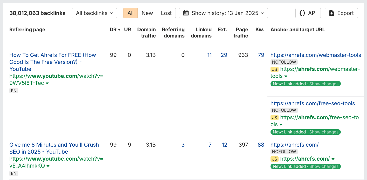 If you’re using Ahrefs Webmaster Tools, check out the Backlink reports in Site Explorer. You’ll get a list of every link to your website from around the web: