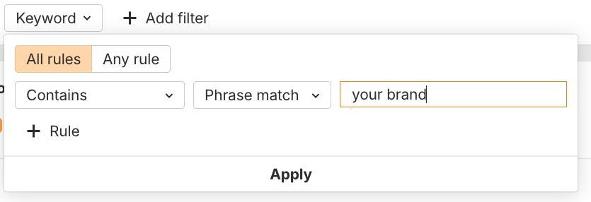 You can use Ahrefs’ Brand Radar to gather these insights. Simply search for your brand: