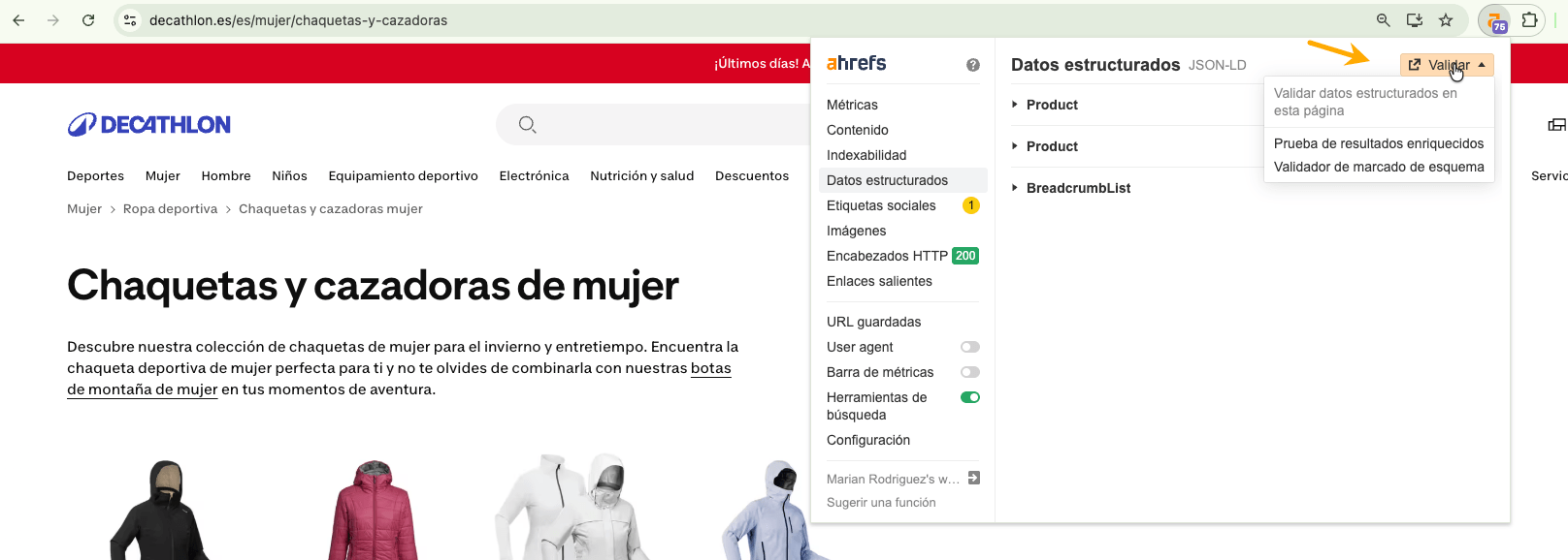 También puedes usar la barra de herramientas SEO de Ahrefs para validar los datos estructurados de un sitio web. Encontrarás más información en este artículo.