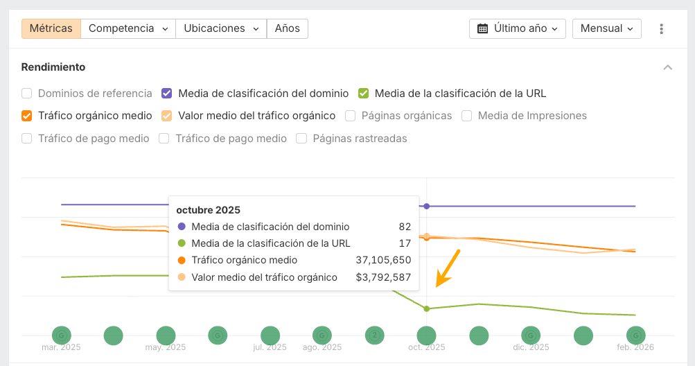 • evolución de la visibilidad, tendencias de la SERP,