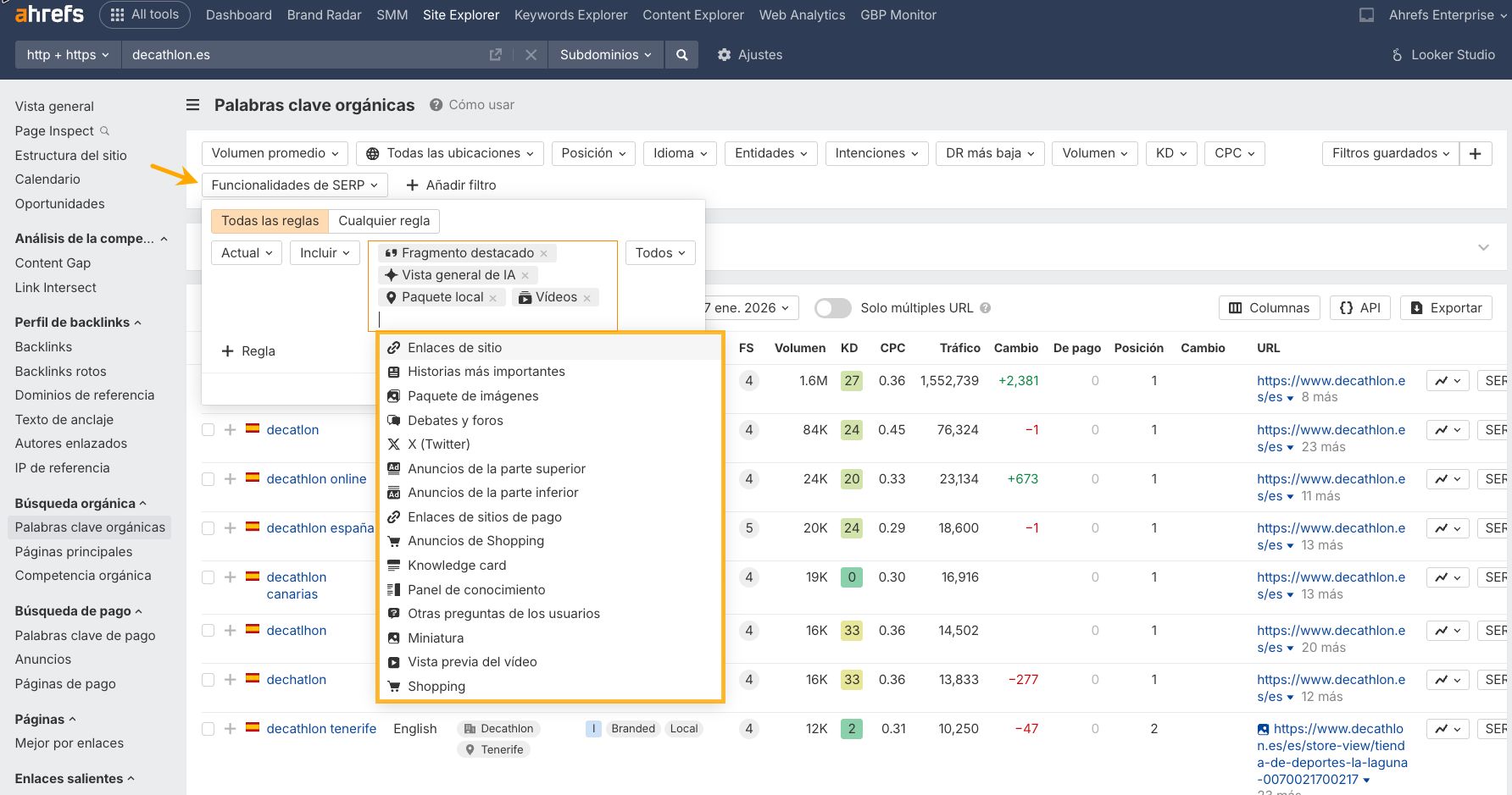 Analizar la SERP ayuda a entender los resultados y no meter la pata decidiendo solo por un puesto. Algo que Decathlon vigila con Ahrefs: