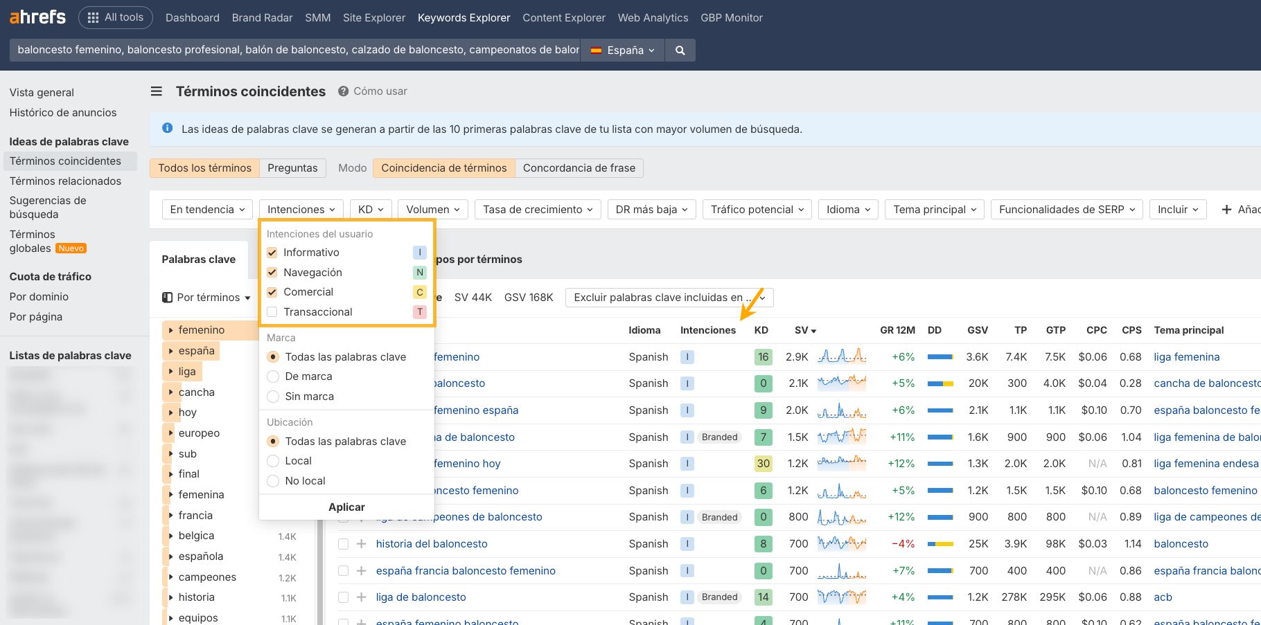 Con el informe de “Términos Globales” en Keywords Explorer