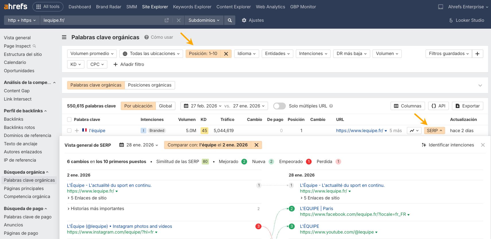 Más allá de los puestos fijos, vigilamos cómo cambian las SERP. Perder palabras clave a veces solo significa que lo que busca la gente ha cambiado y nuestra web tiene que adaptarse.
