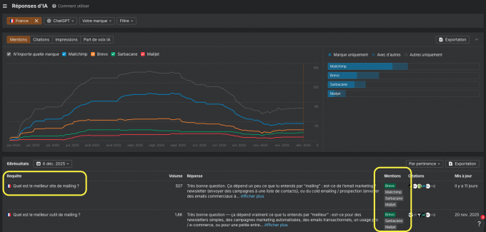 Souvenez-vous, les plateformes IA sont non déterministes : une même requête peut produire différentes réponses dans la journée.