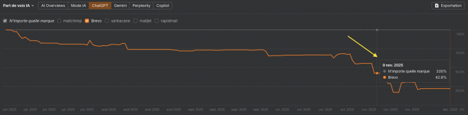 Suivez donc l’évolution quotidienne de votre AI SOV (AI Share of Voice) dans votre niche.