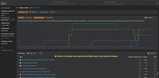 Répétez la même analyse sur les citations pour identifier les opportunités concurrentielles des citations IA.