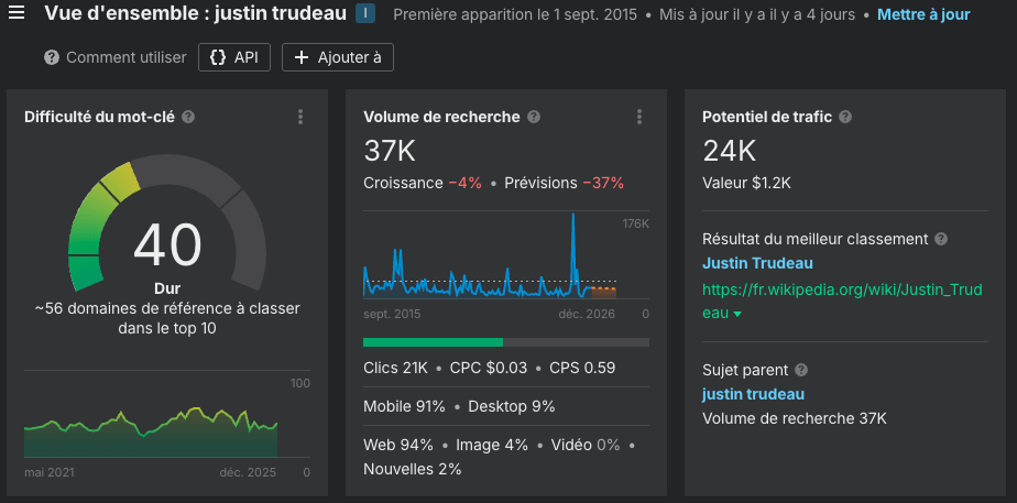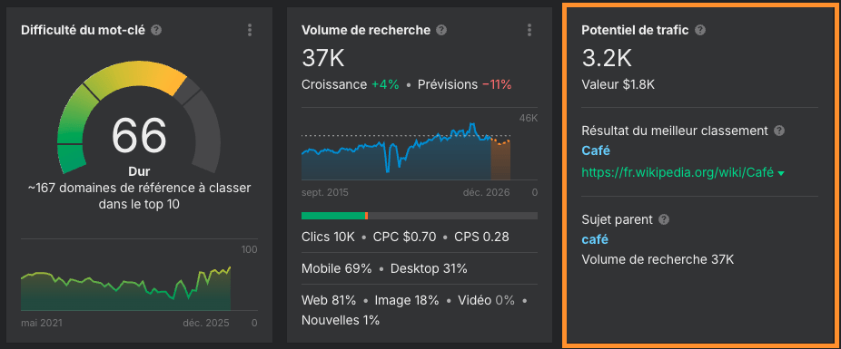 Chez Ahrefs, nous avons estimé que cet élément était trop important pour être ignoré lors de l’analyse des mots-clés. Nous avons donc développé une métrique dédiée pour y répondre.