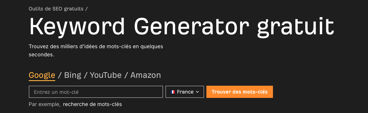 Il existe aussi d’autres outils gratuits de recherche de mots-clés qui peuvent être intéressants (même s’ils ont leurs limites) :