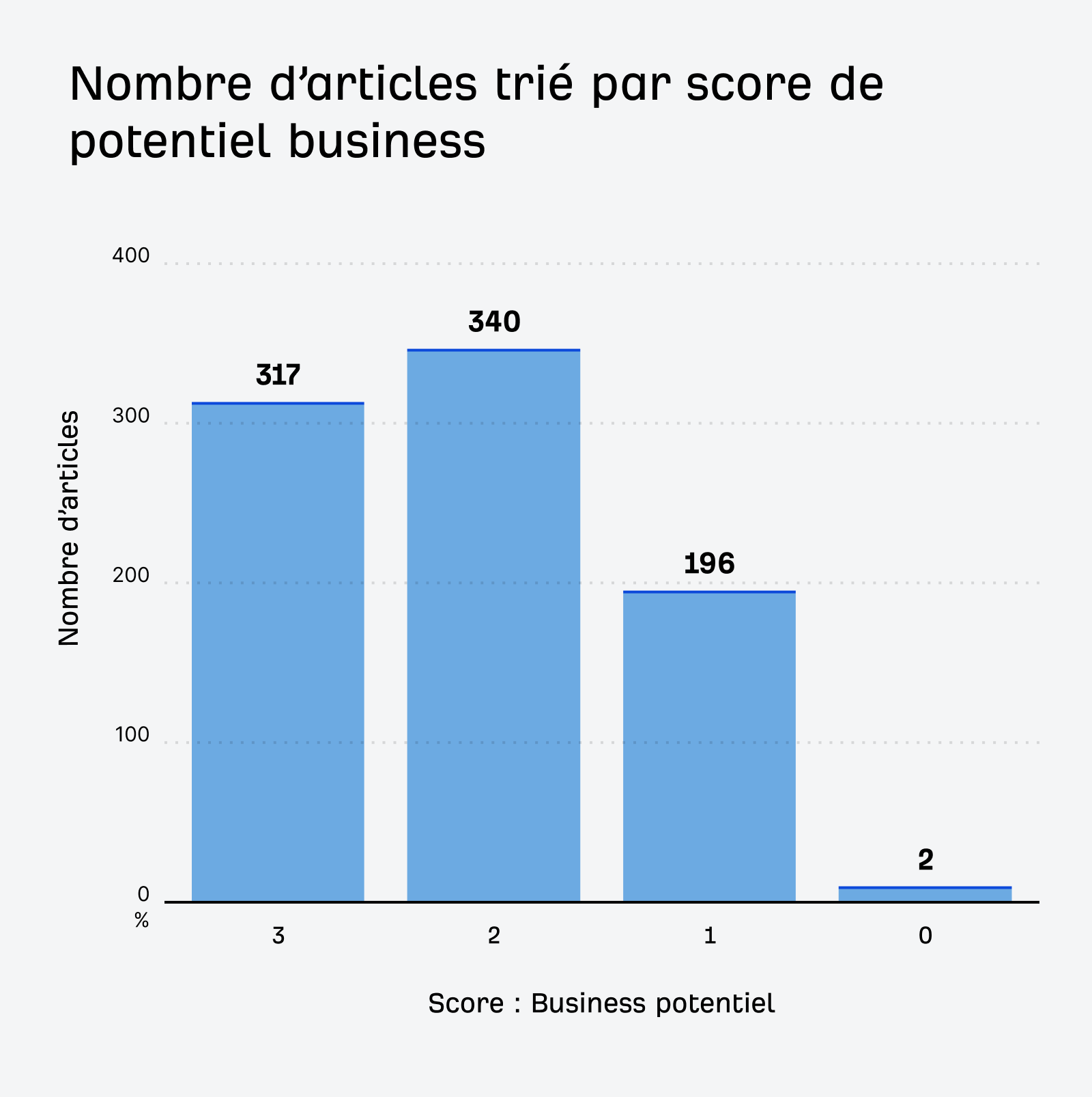 Et comme vous pouvez le constater, nous avions très peu d’articles avec un potentiel business nul.