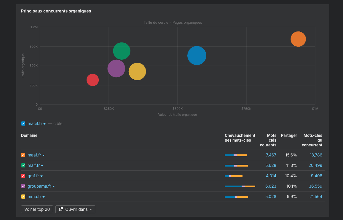En répétant l’exercice sur plusieurs concurrents, vous obtiendrez rapidement une liste conséquente de mots-clés pertinents.