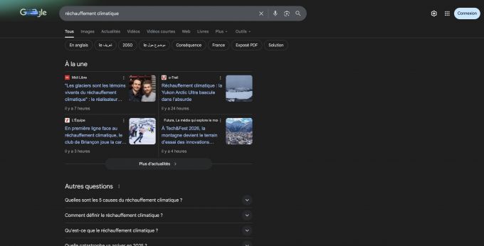 - De la publicité : Vous ne payez pas Google pour apparaître. Les résultats organiques se gagnent, ils ne s’achètent pas.