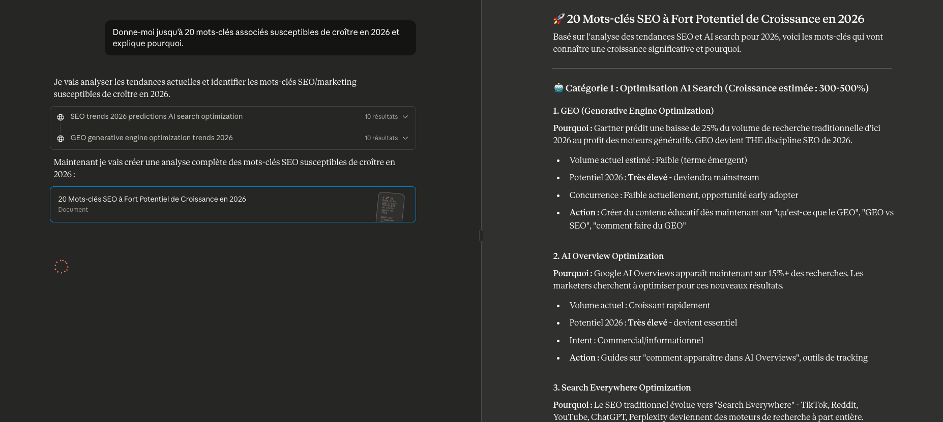 Le LLM récupère automatiquement les données depuis Ahrefs, les analyse et vous fournit un rapport interactif avec lequel vous pouvez échanger.