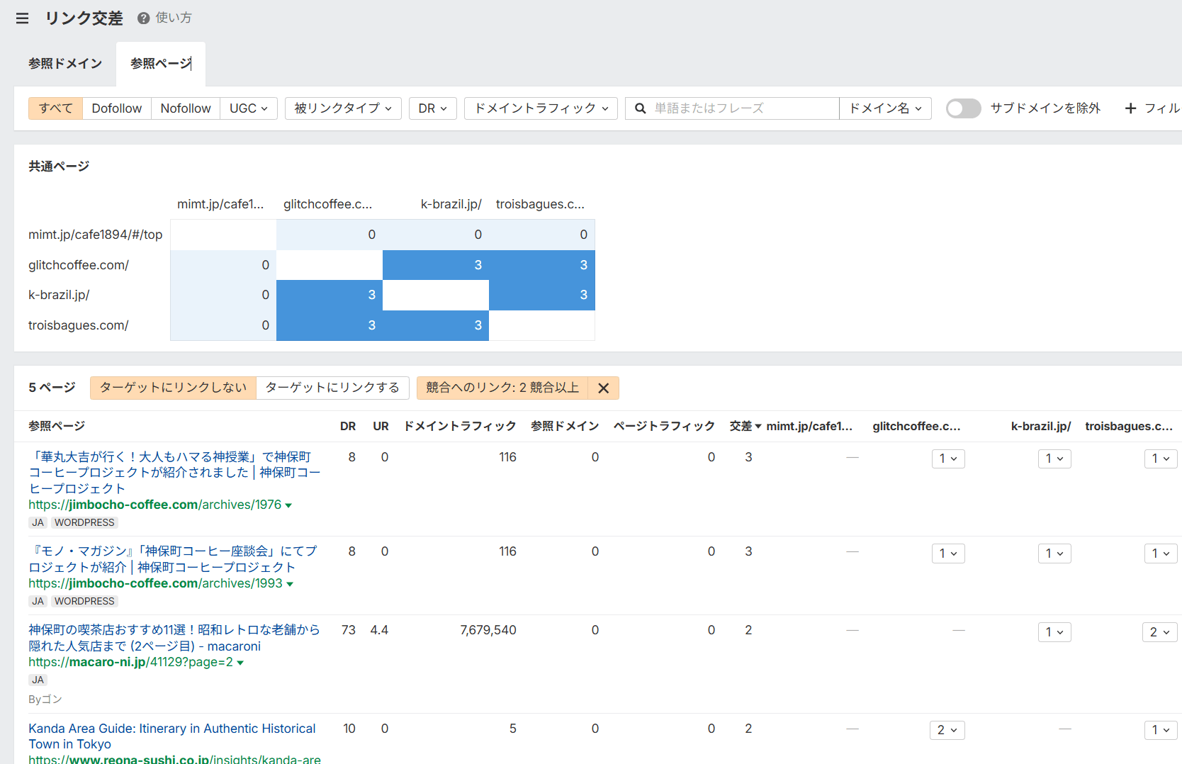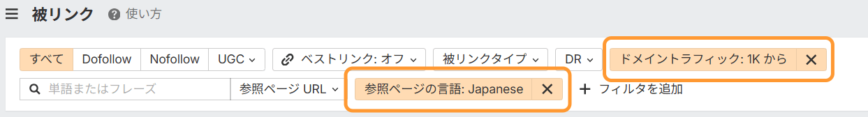 フィルタ機能を駆使して「トラフィックのあるサイト」や「日本語のページ」だけに絞り込むことで、本当に参考にすべきリンクを浮き彫りにできます。