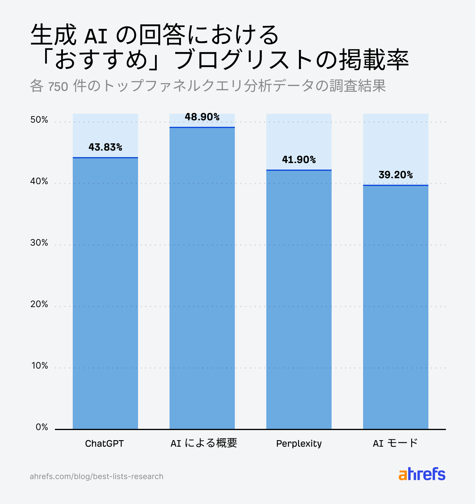 以下では、Ahrefs のデータに基づき、AI による概要で上位表示されるために分かっていることを整理していきます。
