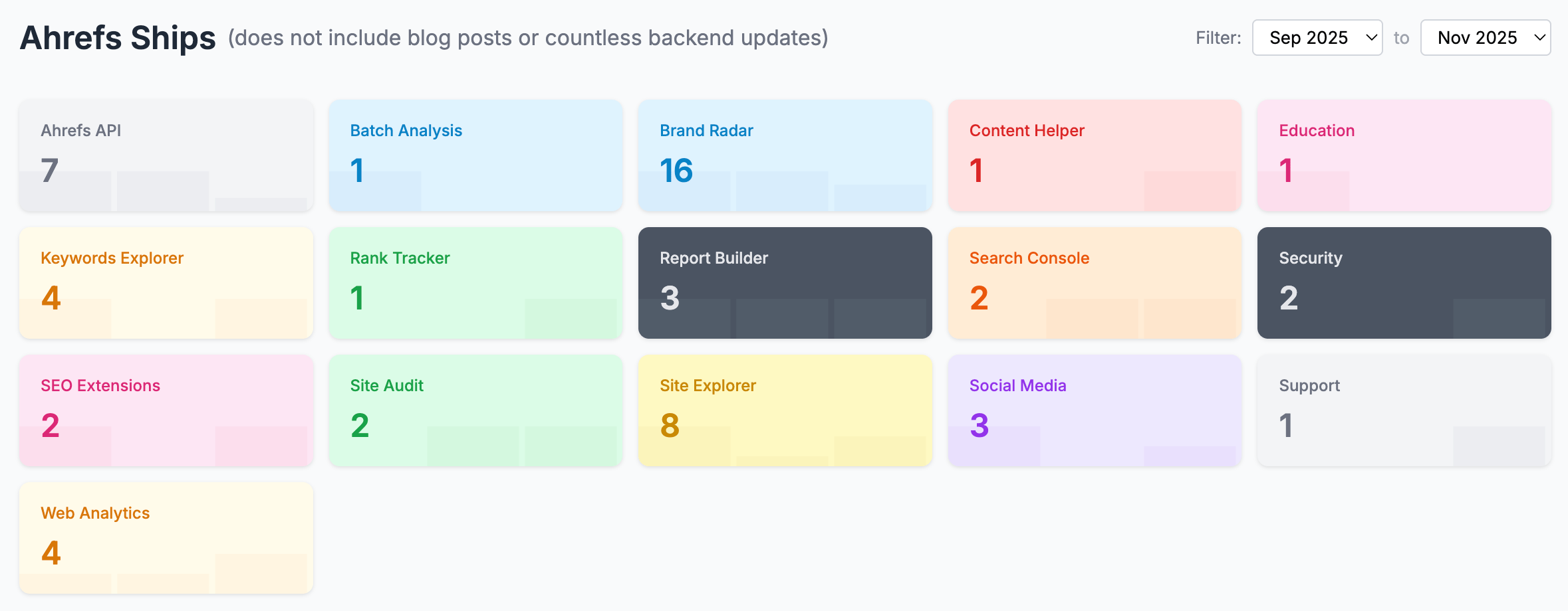 25 July: The AI citations widget at the top of Site Explorer’s Overview now includes Microsoft Copilot data from Brand Radar, giving you broader AI link coverage in one place.