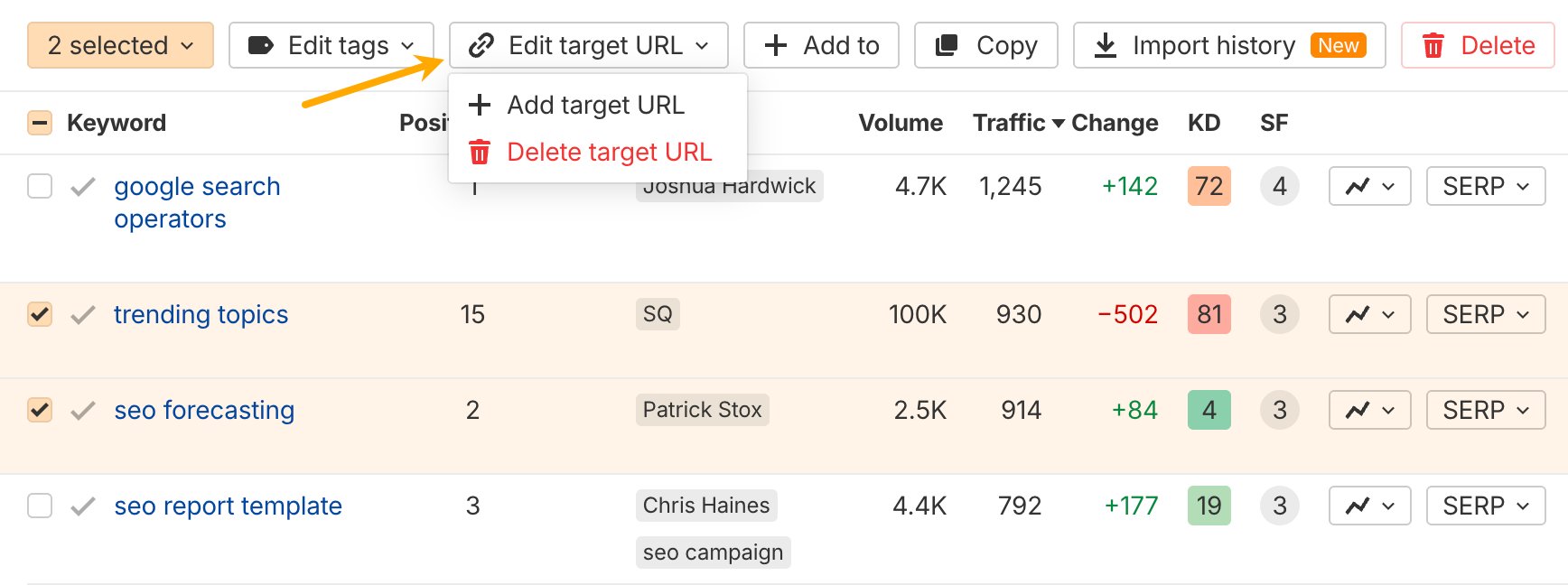 Target URLs can now be assigned or removed in bulk. This makes managing large keyword sets faster and reduces manual errors in complex projects.