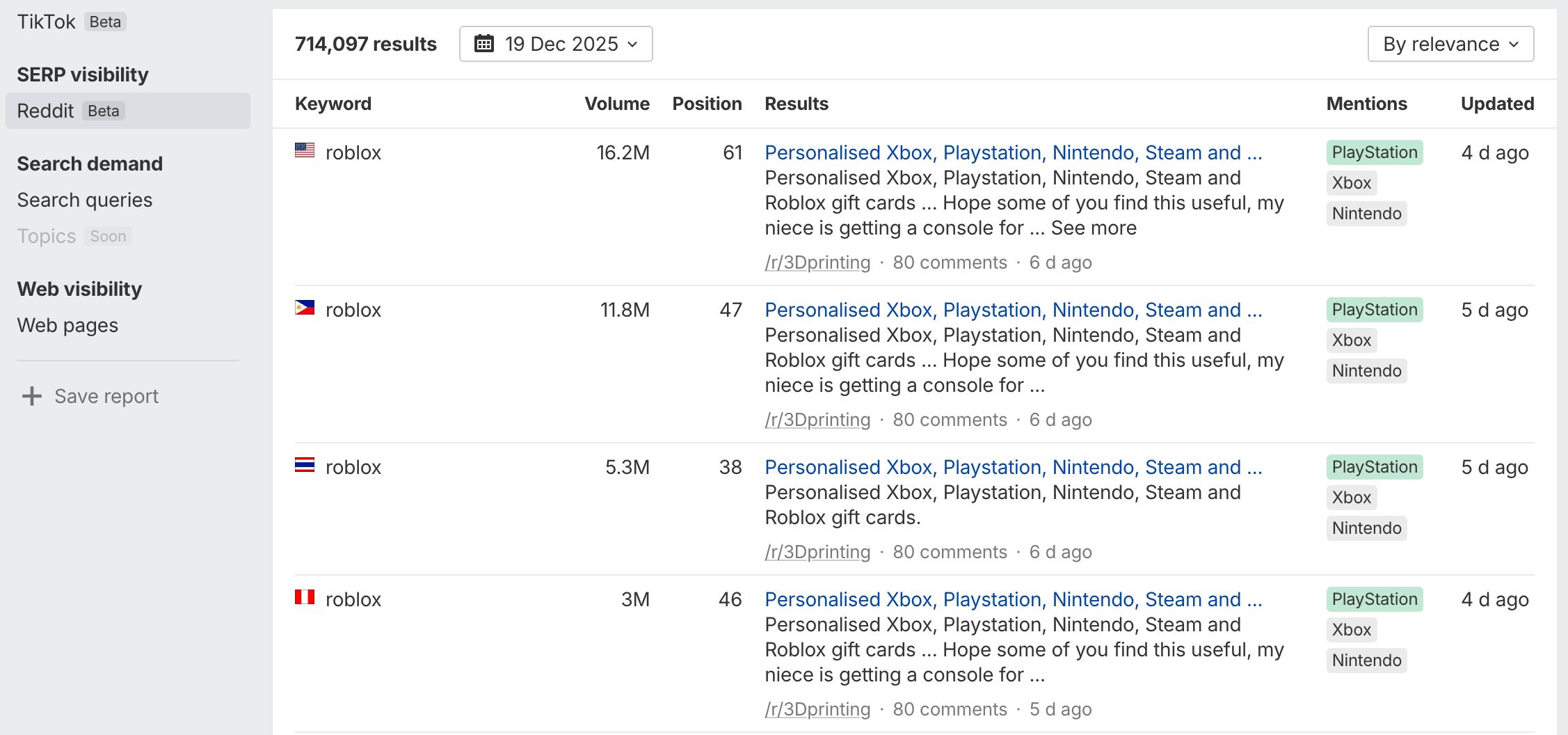 Ahrefs has expanded Brand Radar, its fastest-growing product, with new indexes for YouTube, TikTok, and Reddit. Teams can now track brand mentions across videos and Reddit visibility in Google Search – key surfaces influencing discovery and decision-making.