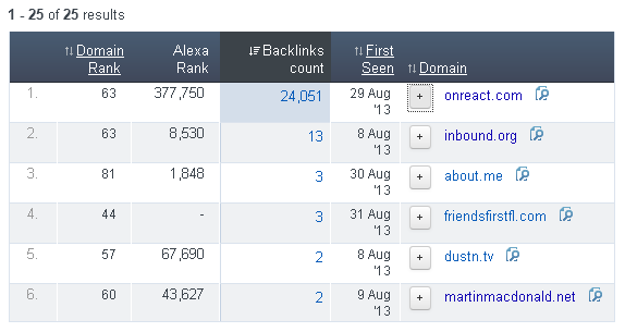 Nothing fancy here. Of course I used the script on my own blog too. It wasn’t just for my readers. I needed the solution right away for my own blog. I used it for years successfully. Until the day Martin Harris alerted me that he gets tens of thousands of spammy links from my domain after commenting on my blog. I got scared. I thought maybe I got hacked or something but then Ahrefs has shown me the issue. I clicked the onreact.com links to find out where they come from and I’ve looked at this: