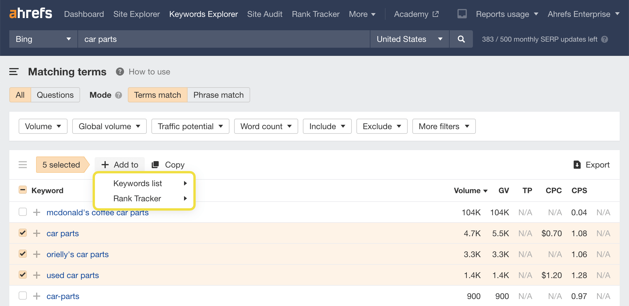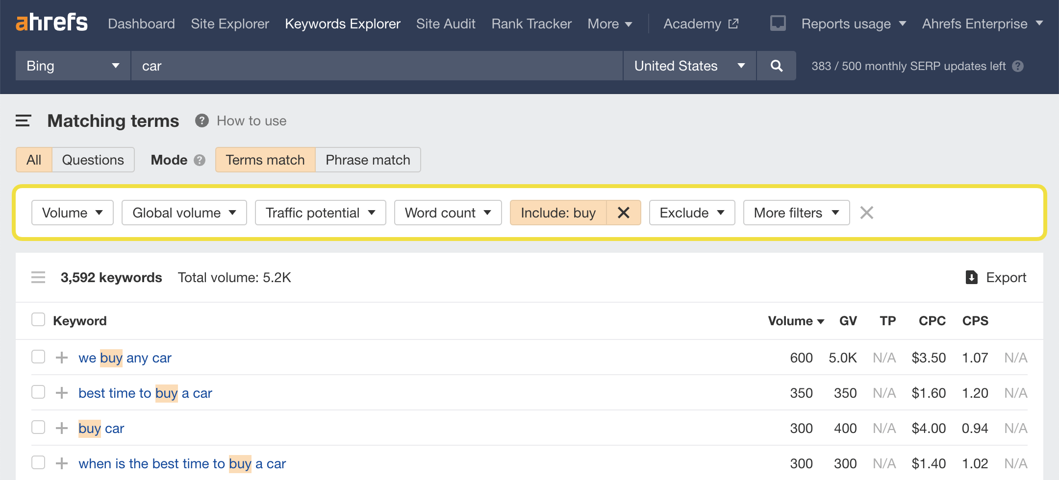 Because Clickstream data powers the Ahrefs Bing Keyword Tool, we're also able to show some other helpful SEO metrics for all keywords: