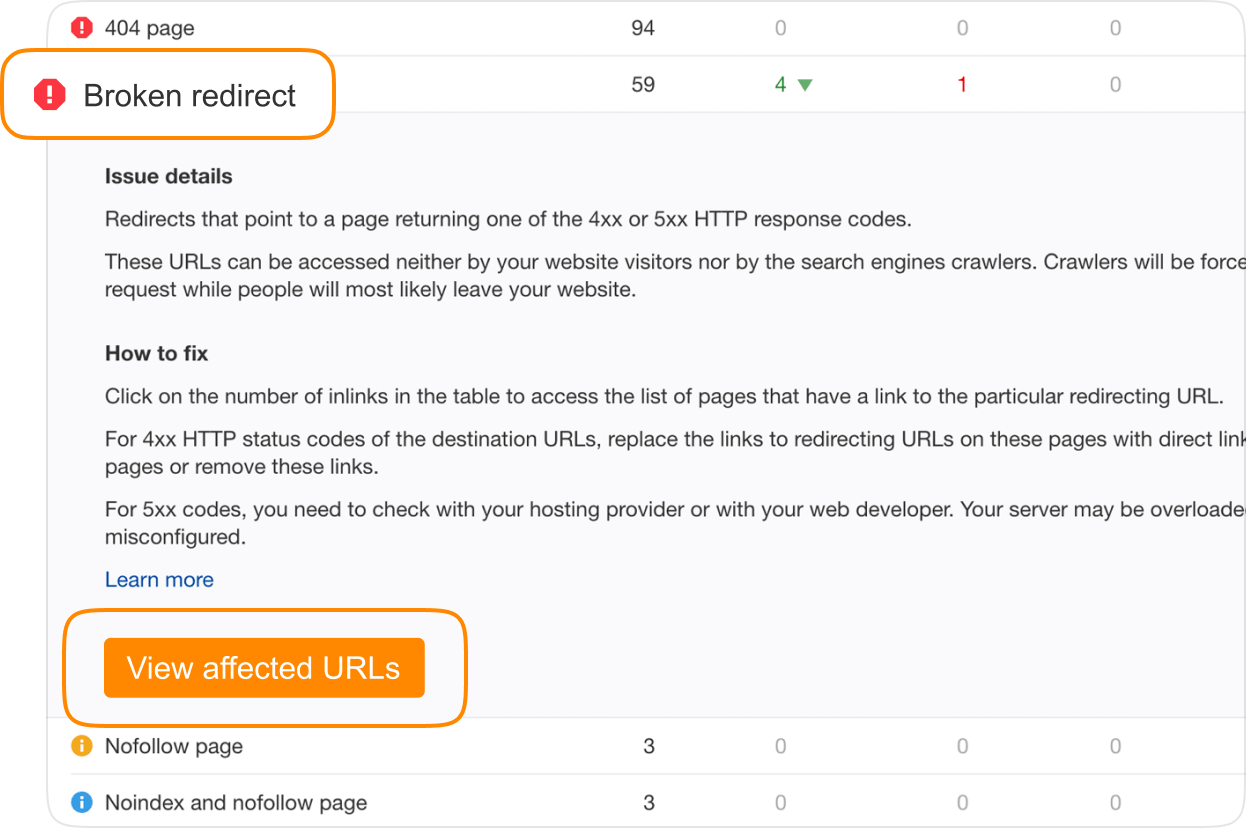 Crawl your website for SEO issues that can hurt your rankings, including:
