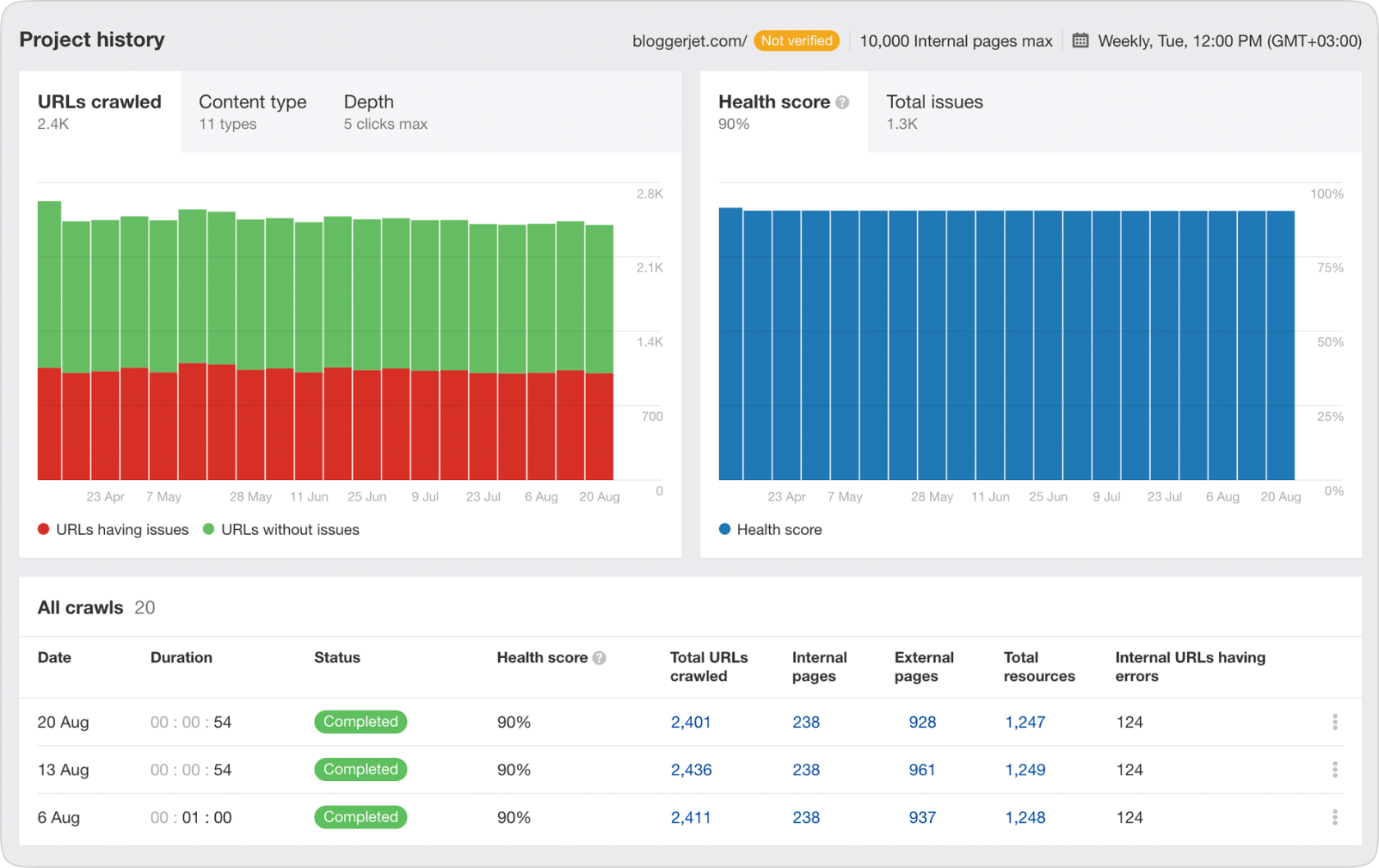 Keep track of your site’s SEO health with daily, weekly, or monthly crawls, and nip SEO issues in the bud as soon as they arise.
