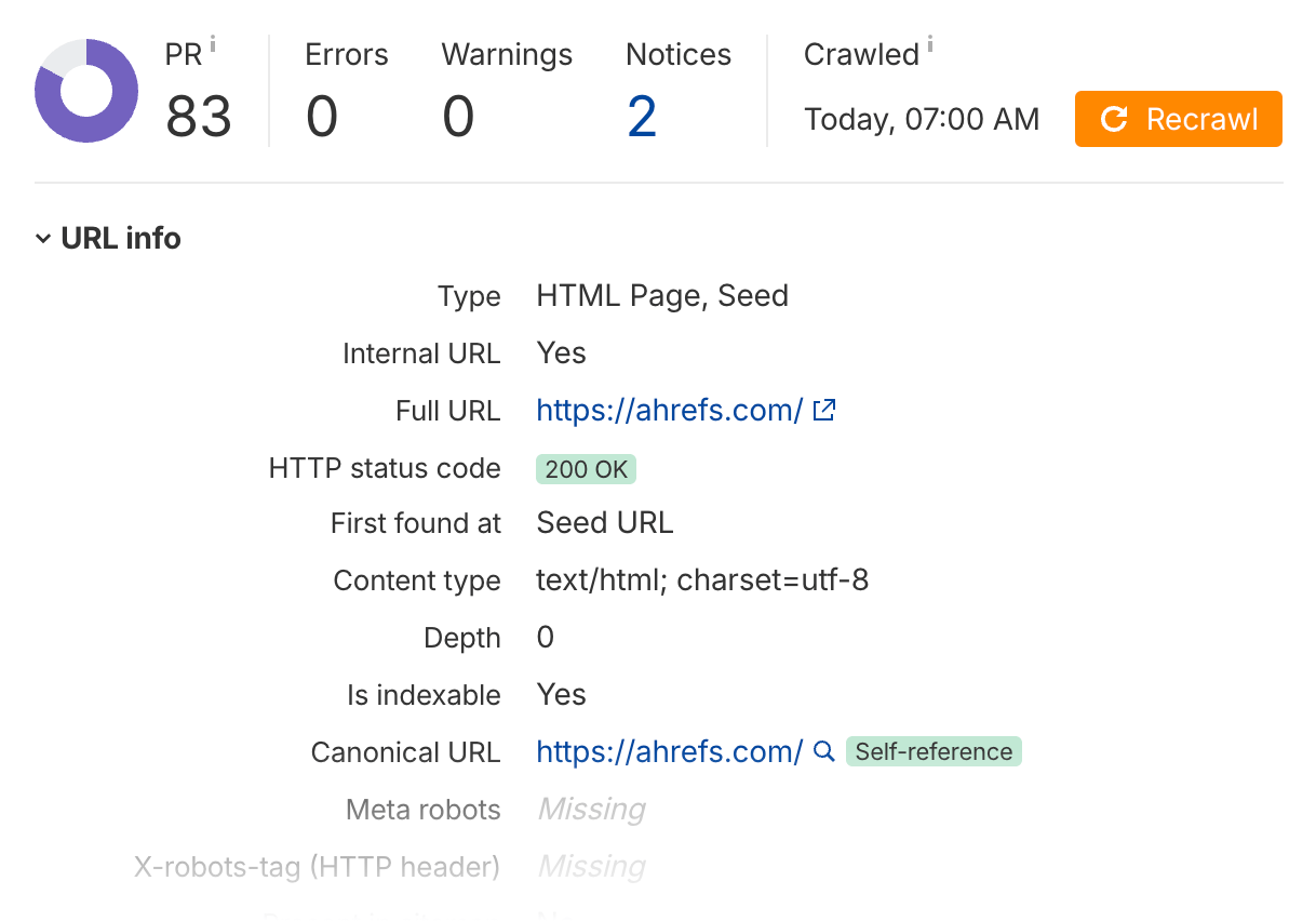Page Explorer gives you a complete diagnostic panel—plus instant page recrawl to check if changes worked.